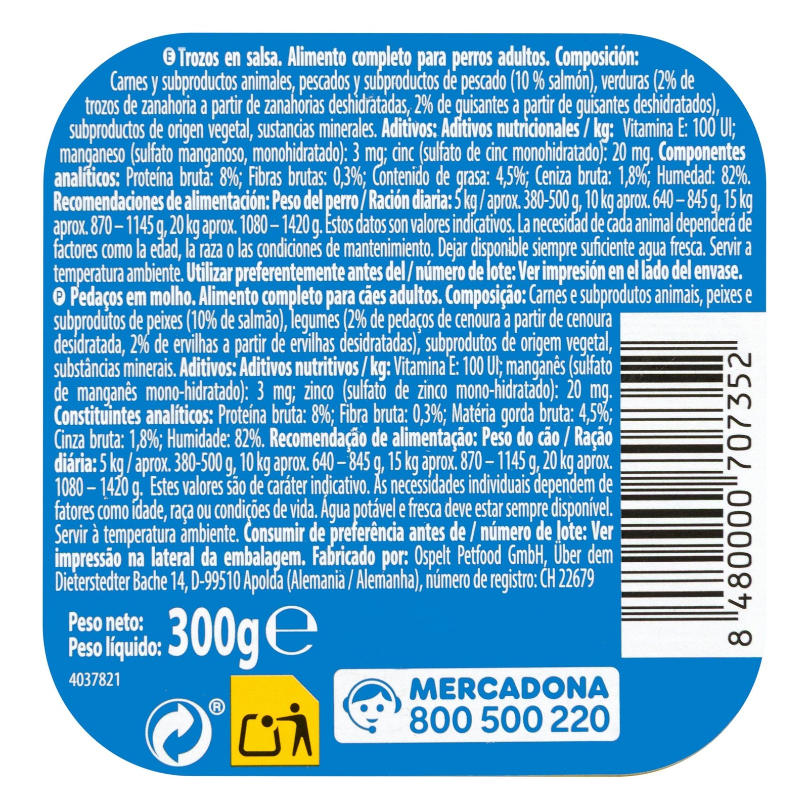 Trozos en salsa perro adulto Delikuit con salmón y verduras